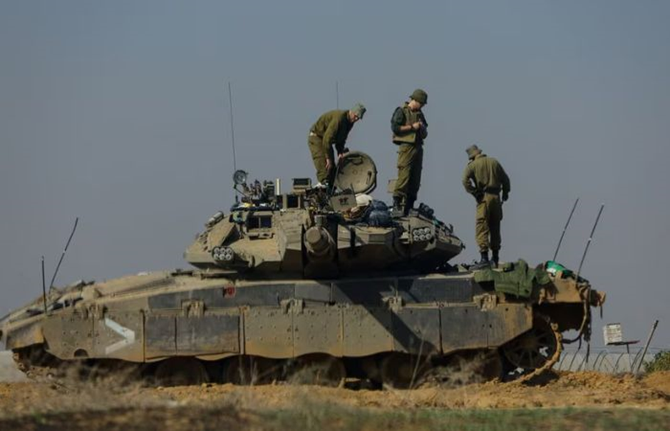 Sebuah tank di dekat perbatasan dengan Gaza. (reuters)