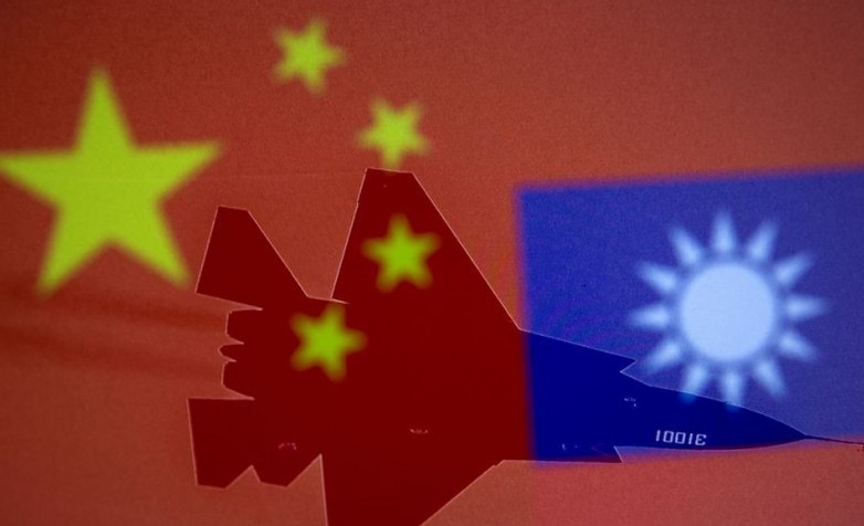 Bendera nasional Tiongkok dan Taiwan ditampilkan di samping pesawat militer dalam gambar ilustrasi yang dibuat 9 April 2021. (ANTARA/Reuters/as) - Image