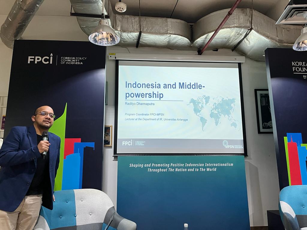 Radityo menjelaskan, middle power atau kekuatan tengah adalah istilah untuk menyebut negara dalam spektrum kekuatan internasional di posisi tengah dan berada di bawah negara adidaya atau superpower. Dengan kondisi itu, negara middle power berusaha untuk mengambil peran dalam forum-forum multilateral dalam rangka meningkatkan kapasitas mereka untuk memitigasi risiko bagi diri mereka sendiri.
