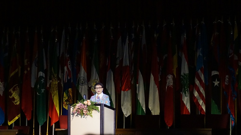 “Indonesia meyakini bahwa suatu negara akan lebih baik ketahanannya apabila kesetaraan gender dihormati. Investing in women, is investing in a brighter and more resilient future," ujar Menlu Retno.