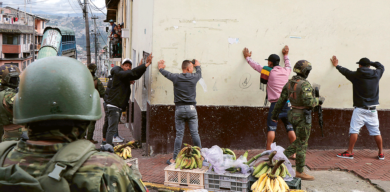 KONDISI DARURAT: Tentara Ekuador memeriksa sejumlah orang dalam rangka melindungi warga sipil di Quito (10/1). Kondisi Ekuador memanas setelah pemimpin geng Jose Adolfo Macias kabur dari penjara.