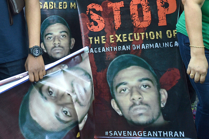Para aktivis yang sebelumnya memprotes rencana eksekusi Nagaenthran K Dharmalingam di depan Komisi Tinggi Singapura di Kuala Lumpur (AFP)