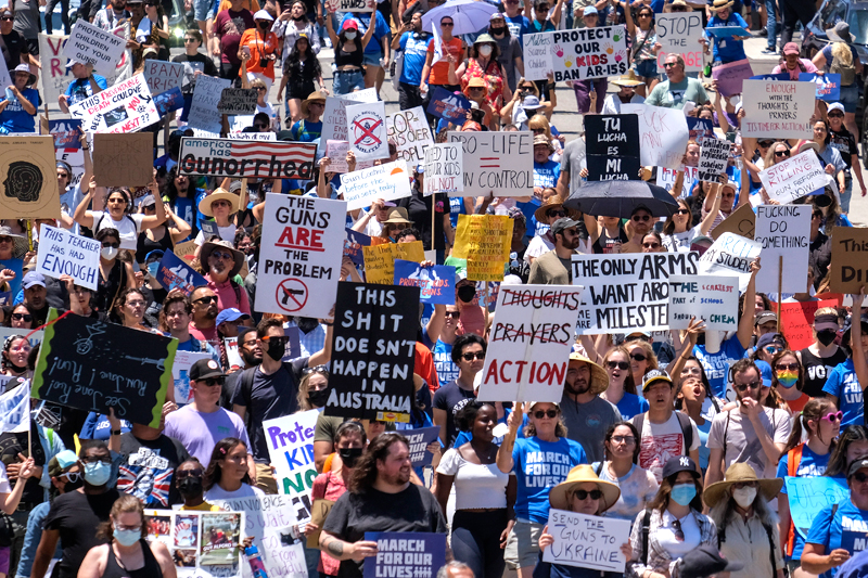 Massa mendesak Kongres menyetujui RUU kepemilikan senjata. Ribuan orang turun ke jalan di berbagai negara bagian. Aksi itu diorganisasi oleh kelompok March For Our Lives (MFOL). Itu adalah organisasi yang dibentuk oleh para penyintas penembakan di Marjory Stoneman Douglas High School, Parkland, Florida, pada 2018.