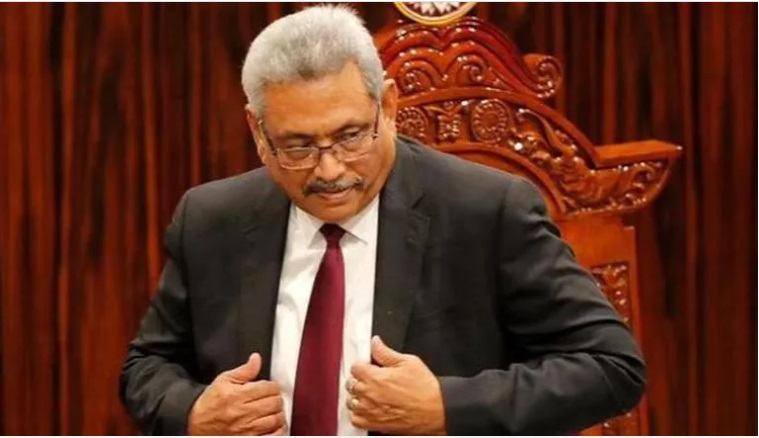 Gotabaya melarikan diri ke Maladewa pada 13 Juli dan kemudian mendarat di Singapura keesokan harinya. Gotabaya mengirim surat pengunduran dirinya pada 14 Juli melalui email ke Ketua Parlemen, beberapa hari setelah pengunjuk rasa menyerbu istana presiden menuntut pengunduran dirinya.