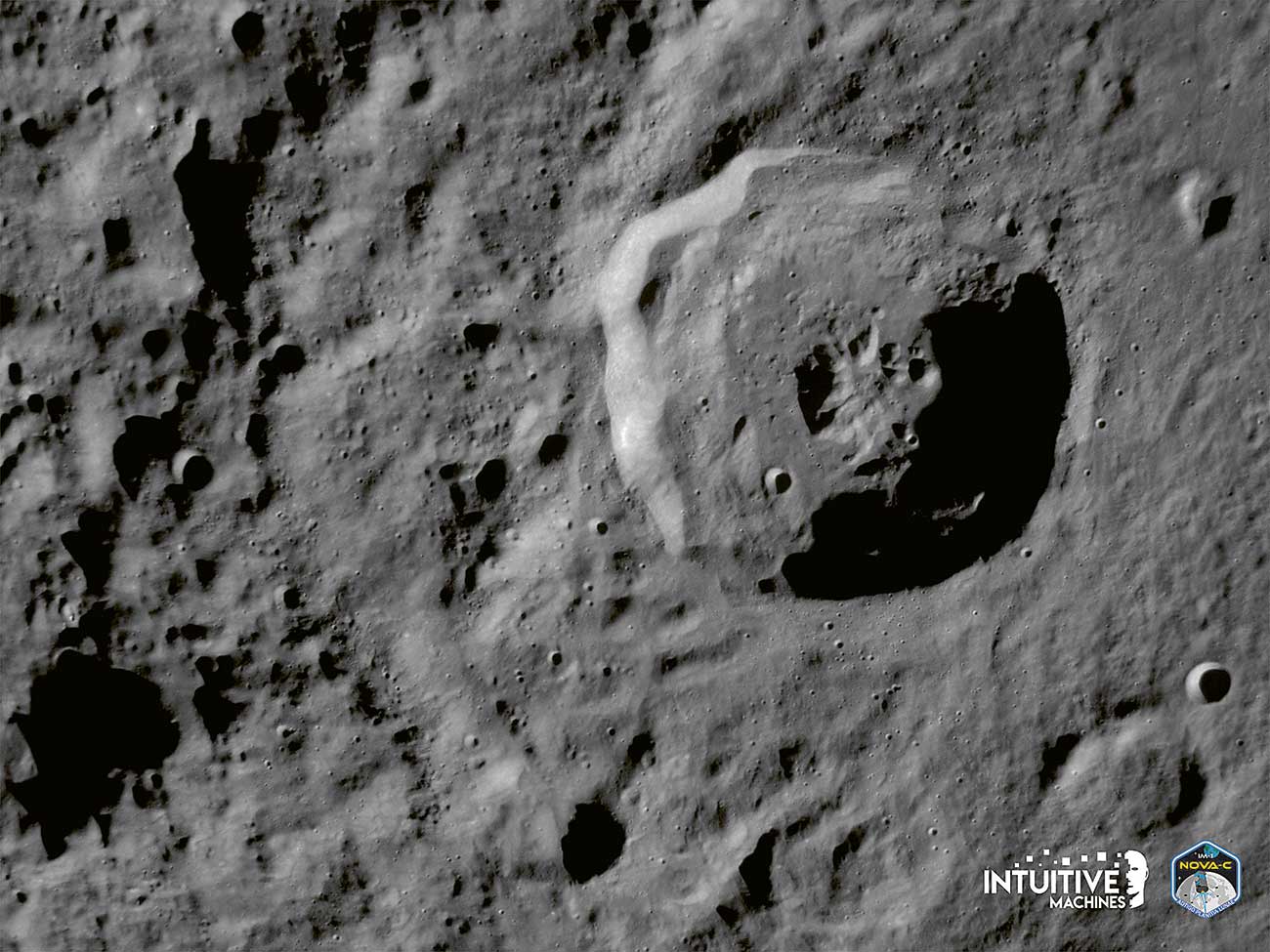 Pesawat tersebut milik Odysseus yang dikembangkan Intuitive Machines yang bermarkas di Houston. Dikutip dari Agence France-Presse (AFP), pendaratan Odysseus tersebut merupakan bagian dari misi Layanan Muatan Bulan Komersial NASA (Badan Antariksa Amerika Serikat). Misi tersebut memberi kesempatan perusahaan swasta seperti Intuitive Machines bekerja sama dengan NASA mengirimkan material ke bulan.