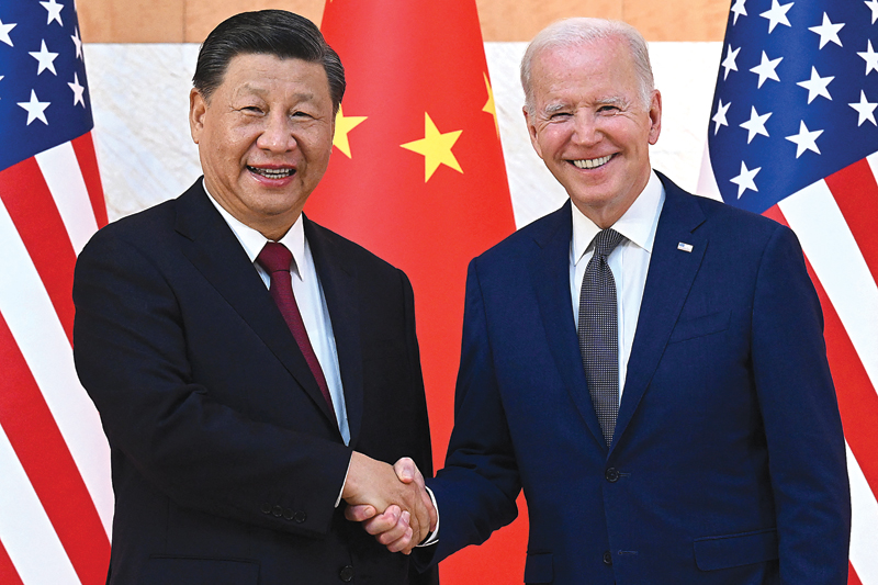 TIONGKOK-AMERIKA: Presiden Joe Biden (kanan) bersalaman dengan Presiden Xi Jinping. (AFP)