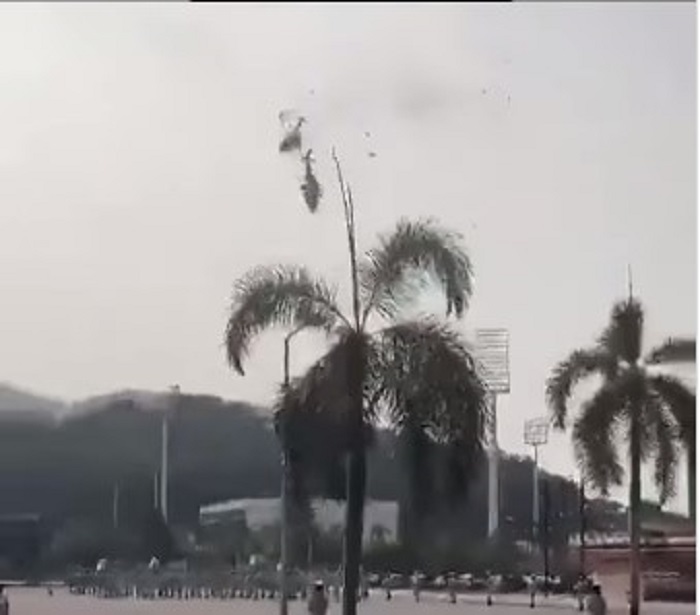 Terlihat pada video tersebut beberapa helikopter militer Malaysia tengah membentuk formasi barisan. Kemudian terdapat dua helikopter yang terbang terlalu dekat, sehingga menyebabkan keduanya tabrakan dan jatuh.