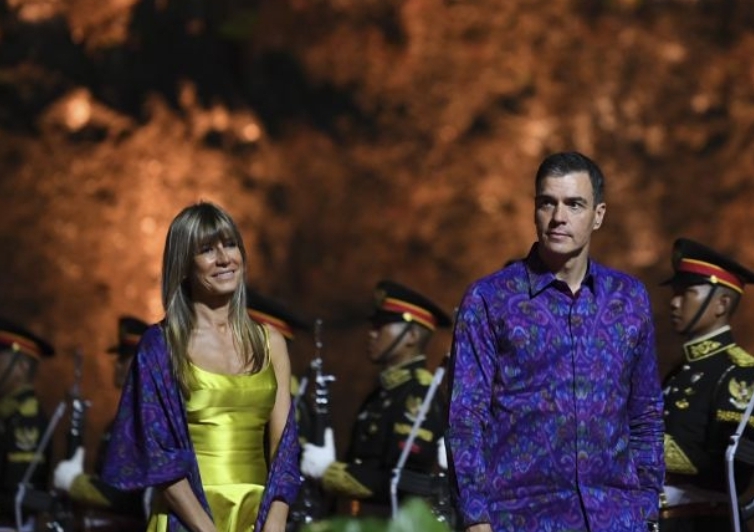 Perdana Menteri Spanyol Pedro Sanchez (kanan) dan istri Maria Begona Gomez Fernandez