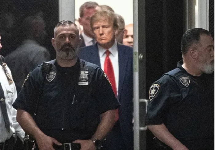 Trump ditahan di kejaksaan distrik Manhattan dan dijaga ketat polisi sebelum jaksa membacakan dakwaan. Seperti diketahui, dalam surat dakwaan yang diungkap Jaksa Wilayah Manhattan Alvin Bragg, mendakwa Trump dengan 34 tuduhan kejahatan karena memalsukan catatan bisnis melalui skema tangkap dan bunuh yang dirancang untuk menyembunyikan informasi yang merusak dan aktivitas melanggar hukum sebelum Pemilu 2016.