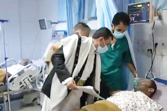 BERUJUNG PETAKA: Korban yang terluka menjalani perawatan di rumah sakit setelah terinjak-injak pada acara distribusi bantuan di Sana, Ibu Kota Yaman, Kamis (20/4). Lebih dari 80 orang tewas.
