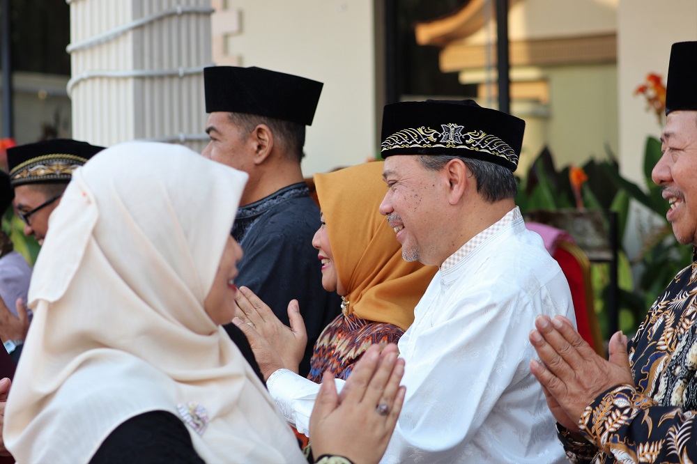 Acara salat Idul Fitri kemudian dilanjutkan dengan halalbihalal yang merupakan sebuah kearifan lokal bangsa kita Indonesia yang tidak terlupakan pada saat Hari Raya. Konjen RI Jeddah Eko Hartono didampingi istri Sawitri Kuswandani Eko Hartono dan para jemaah yang hadir bersalam-salaman, beriringan saling memaafkan dan memberikan senyuman.