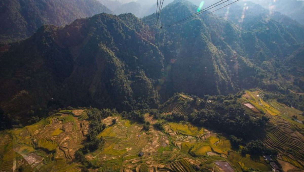 Hamparan sawah bertingkat yang memukau terlihat dari udara di kawasan pegunungan Sa Pa, Vietnam. (Travelandtourworld.com)
