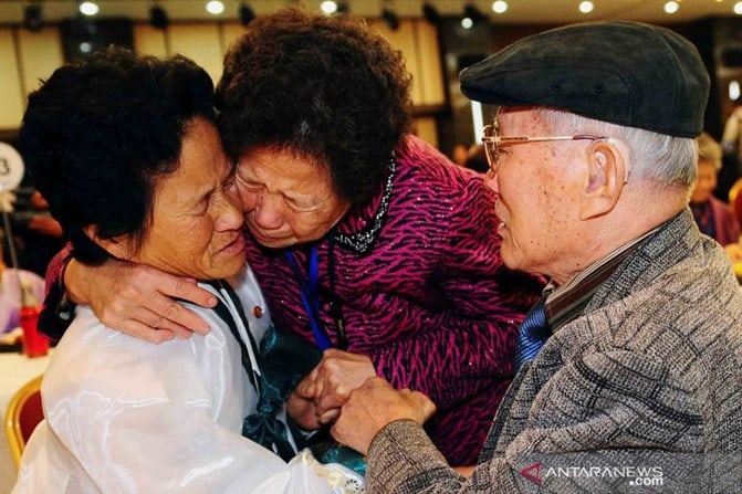 Warga negara Korea Selatan berusia 90 tahun, Kim Sung-bok (kanan), bertemu dengan putrinya Kim Hee-sook (61 tahun, kiri) saat reuni keluarga sementara antarkedua Korea di Mount Kumgang Resort di Korea Utara (3/11/2010). ANTARA FOTO/Kim Chang-gil/Korea Poo