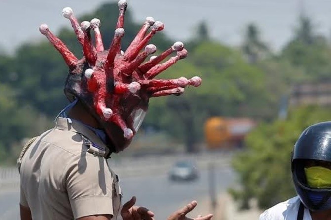Di Chennai, inspektur polisi Rajesh Babu bergabung dengan seniman setempat untuk merancang helm dengan paku merah dan bola lampu untuk menjaring pengemudi di sana. Di tempat lain di India, polisi juga membagikan masker dan sarung tangan di permukiman kumuh dan mendistribusikan makanan kepada pekerja migran yang berusaha pulang. Serta juga meringkus jutaan dolar masker dan sanitiser palsu dari pasar.