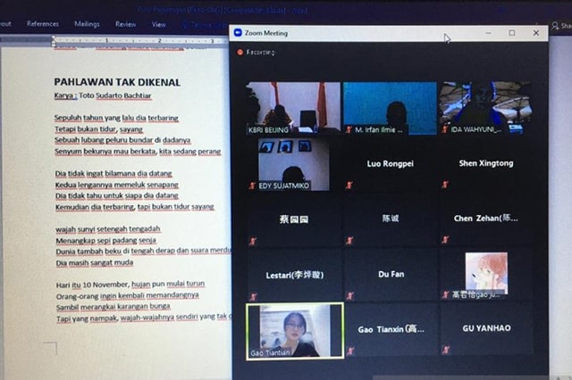 JawaPos.com - Dalam rangka memperingati Hari Ulang Tahun ke-75 RI, Kedutaan Besar RI di Tiongkok menggelar lomba baca puisi tentang kepahlawanan dan kemerdekaan. Perserta lomba tersebut yakni mahasiswa jurusan Bahasa Indonesia, di Tiongkok. Di luar ekspektasi, peminatnya lebih banyak dari segi jumlah maupun kemampuan.