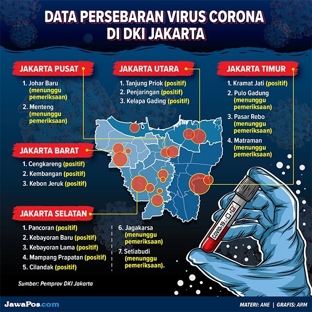 Peta persebaran virus korona di Jakarta. (ARM/ JawaPos.com)
