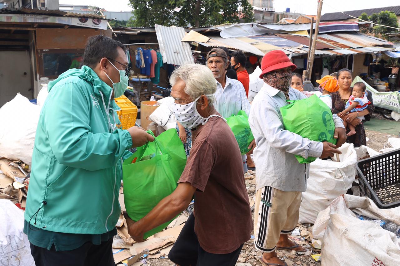 JawaPos.com - Dewan Pengurus Pusat (DPP) Partai Kebangkitan Bangsa (PKB) membagikan paket sembako kepada para pemulung di DKI Jakarta yang tidak terdaftar sebagai penerima bantuan pemerintah. Pembagian dilakukan di RT 05/09, Kelurahan Pejaten Barat, Kecamatan Pasar Minggu, Jakarta Selatan, Selasa (12/5).