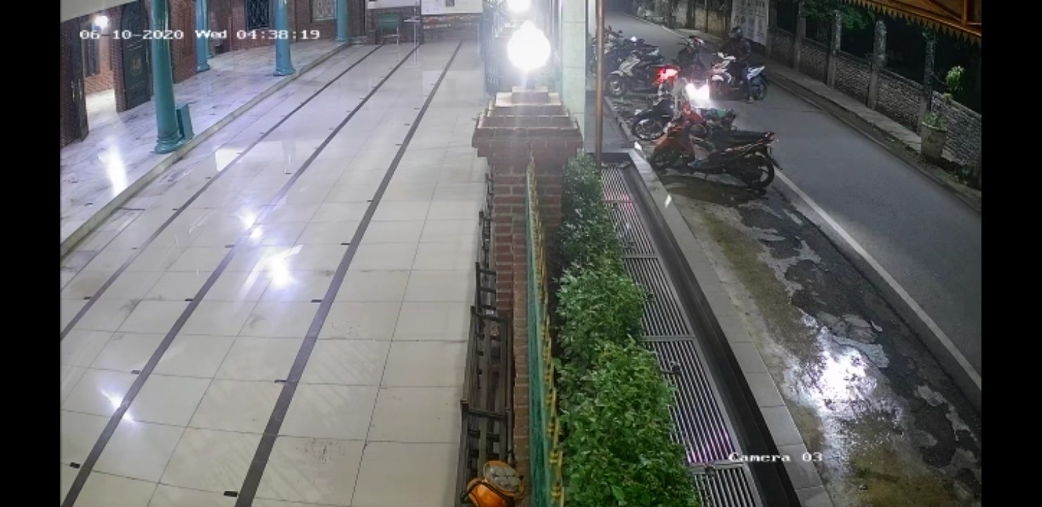 Beruntung peristiwa ini terekam oleh CCTV masjid. Dalam tayangan CCTV tersebut terlihat jelas pencuri ini berjumlah dua orang. Mereka datang berboncengan dengan sepeda motor.