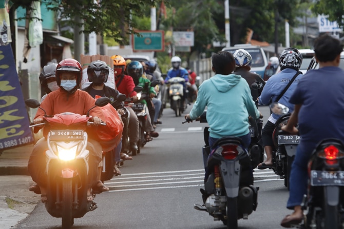 Pengendara motor melawan arah di Jalan Raya Lenteng Agung, Jakarta Selatan, Selasa (2/1/2021). Perilaku tidak disiplin pengendara motor ini berpotensi membahayakan diri sendiri dan pengguna jalan lain. Data Korlantas Polri 2019, dari 196.457 kejadian di j