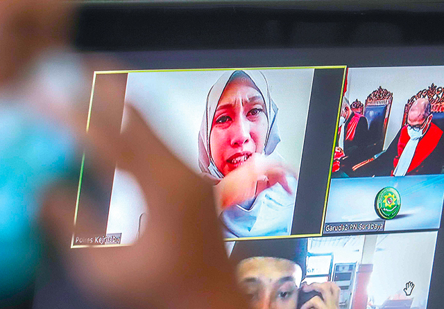 MENGAKU: Sidang kasus pembunuhan bayi oleh terdakwa Eka Sari Yuni Hartini dengan agenda mendengarkan keterangan saksi di Pengadilan Negeri Surabaya Senin (19/9). (Allex Qomarulla/Jawa Pos)