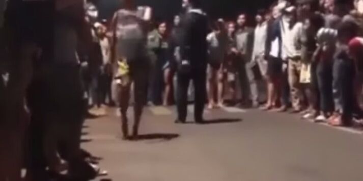Namun setelah dilihat kembali, ternyata video tersebut memperlihatkan dua orang pemuda tanpa alas kaki, tengah bersiap adu kecepatan dengan berlari serta disaksikan puluhan rekannya.