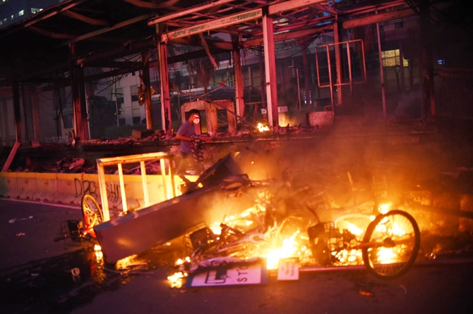 Unjuk rasa kemudian berakhir ricuh di sejumlah daerah. Khusus di DKI Jakarta, terjadi pembakaran fasilitas umum seperti halte, hingga pos polisi.