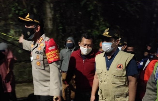 Wakil Gubernur DKI Jakarta Ahmad Riza Patria (kanan) meninjau beberapa lokasi terdampak longsor dan banjir di Jakarta, Sabtu (10/10) malam. Istimewa/Antara