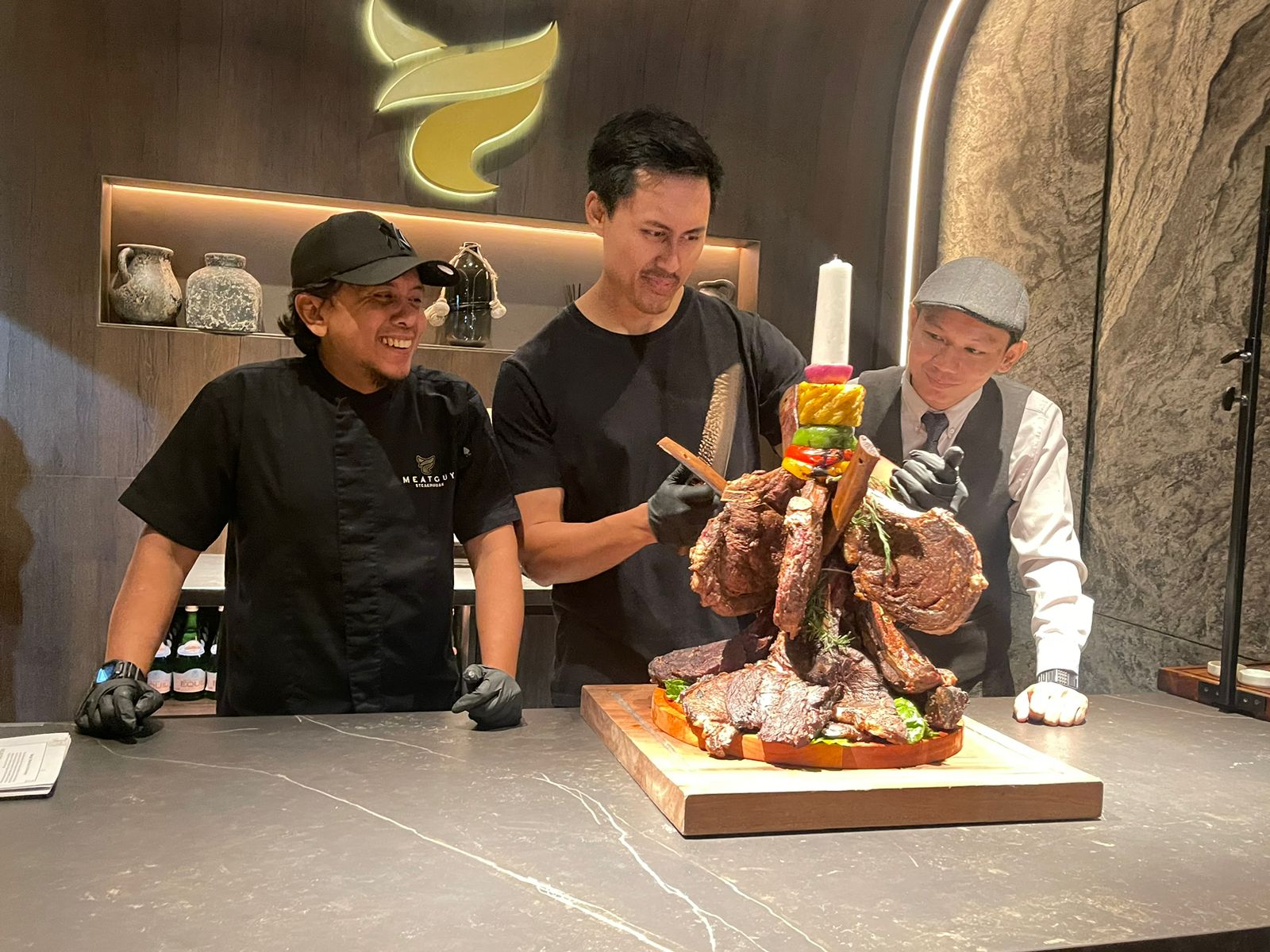 Untuk merayakan ulang tahun pertamanya, Meatguy Steakhouse di Bintaro, Tangerang Selatan menghadirkan sebuah kue ulang tahun yang disebut Meat Tower (menara daging). Kue itu terdiri dari berbagai jenis daging yang disajikan dengan cara yang unik dan menggoda selera. Salah satunya adalah menu ikonik Meatguy Steakhouse, The Hanging Tomahawk.