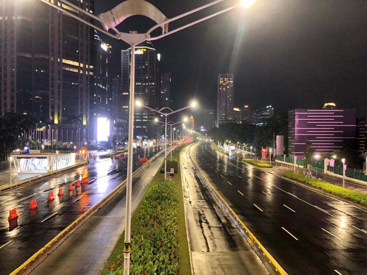 JawaPos.com - Direktorat Lalu Lintas (Ditlantas) Polda Metro Jaya menutup ruas Jalan Jenderal Sudirman-MH Thamrin. Pada malam pergantian tahun 2020 menuju 2021 polisi menerapkan car free night (bebas kendaraan) dan crowd free night (bebas keramaian).