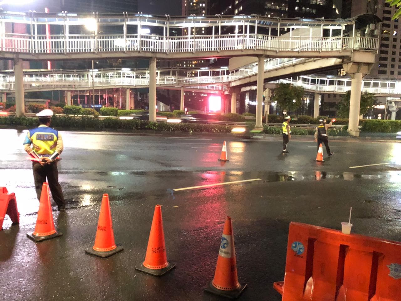 Penutupan ruas jalan sudah dilakukan sejak Pukul 20.00 WIB sampai dengan Pukul 03.00 WIB esok hari. Polisi sudah melakukan penjagaan disetiap sudut menuju ruas jalan tersebut.