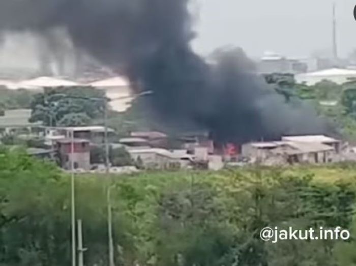 Kebakaran sempat terjadi di samping Depo Pertamina Plumpang, tepatnya di Jalan Inspeksi Kali Sunter, RT 009 RW 013, Kelapa Gading Barat, Kelapa Gading, Jakarta Utara. (Instagram @jakut.info - Image