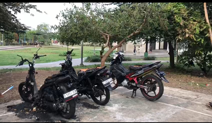 Dua motor hangus jadi debu, sedangkan dua lainnya terdampak hingga meleleh sebagian bodynya.