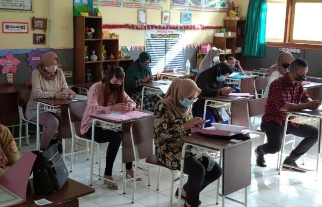 Sejumlah orang tua mengisi formulir pendaftaran PPDB di salah satu SD negeri di Kabupaten Jember. Zumrotun Solichah/Antara