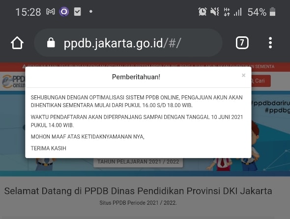Kendala akses ini pun membuat masa pendaftaran untuk jalur yang tersedia diperpanjang. Dari yang semula pada 9 Juni, diundur menjadi 10 Juni. "Waktu pendaftaran akan diperpanjang sampai dengan tanggal 10 Juni 2021 pukul 14.00 WIB. Mohon maaf atas ketidaknyamanannya, terima kasih," lanjut keterangan itu.