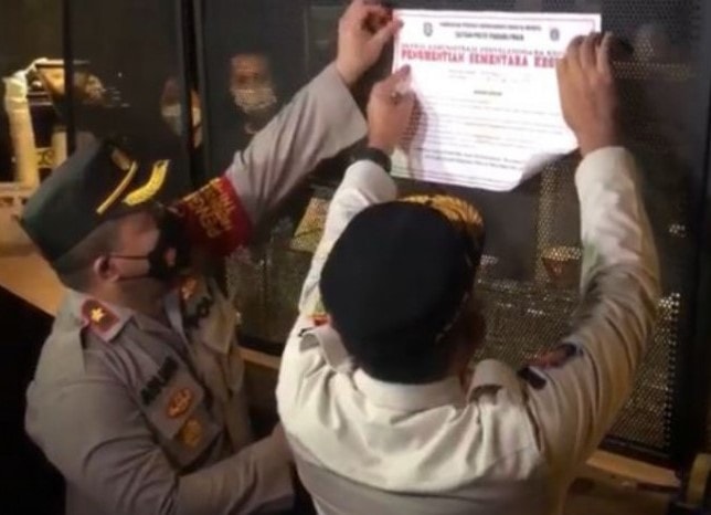 Dijelaskan Arifin, Cafe 98 termasuk kategori bar dan selama PPKM level 3 belum diperbolehkan beroperasi. ’’Jadi karena beraktivitas, tindakannya adalah yang pertama selama PPKM sebelum diizinkan akan ditutup. Yang kedua karena tidak ada izin dikenakan sanksi Rp 50 juta,’’ ujar Arifin.