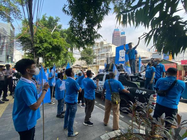 JawaPos.com - DPD Komite Nasional Pemuda Indonesia (KNPI) Jakarta Pusat menggelar unjuk rasa di depan kantor Partai Solidaritas Indonesia (PSI) di Tanah Abang, Jakarta Pusat pada Selasa (28/9). Kegiatan ini digelar karena Plt Ketua Umum PSI Giring Ganesha dianggap telah menyebarkan fitnah kepada Gubernur DKI Jakarta Anies Baswedan.
