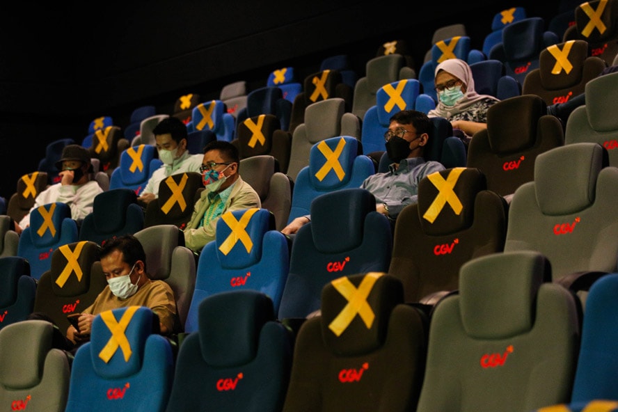 Bioskop CGV Grand Indonesia di Jakarta, Kamis (16/9/2021). Pemerintah memberikan kelonggaran dengan diperbolehkannya bioskop buka kembali di wilayah-wilayah dengan status pemberlakuan pembatasan kegiatan masyarakat (PPKM) level 3 dan 2 dengan kapasitas pe