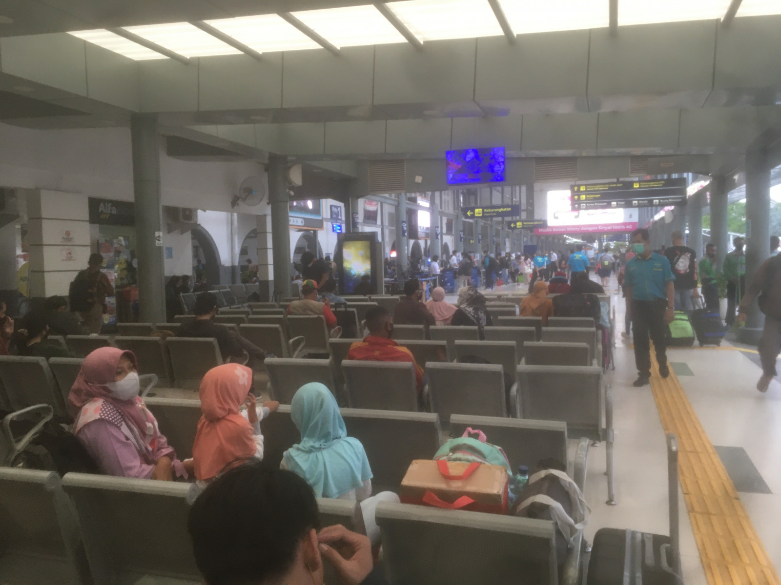 Berdasarkan pantauan JawaPos.com, aktivitas di Stasiun Pasar Senen mulai ramai jika dibandingkan dua tahun sebelumnya yang sangat sepi pengunjung. Para petugas pun terlihat selalu melayani para penumpang yang bertanya terkait keperluan keberangkatan.