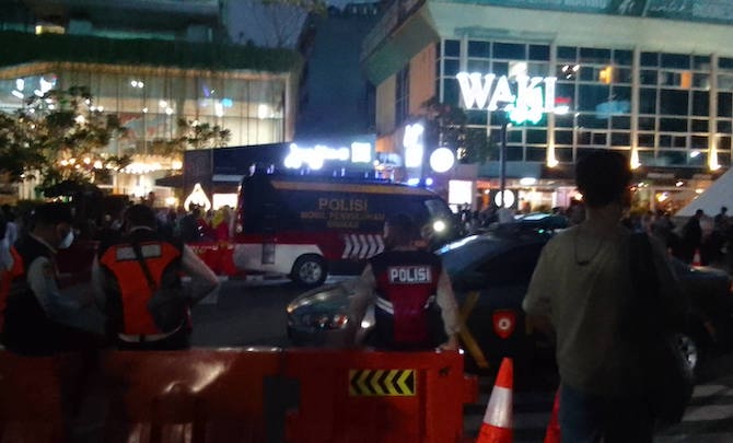 Hingga sekitar pukul 17.30 WIB petugas mulai memasang barrier-barrier tersebut di depan zebra cross. Orang-orang mulai menyingkir dari area tersebut.