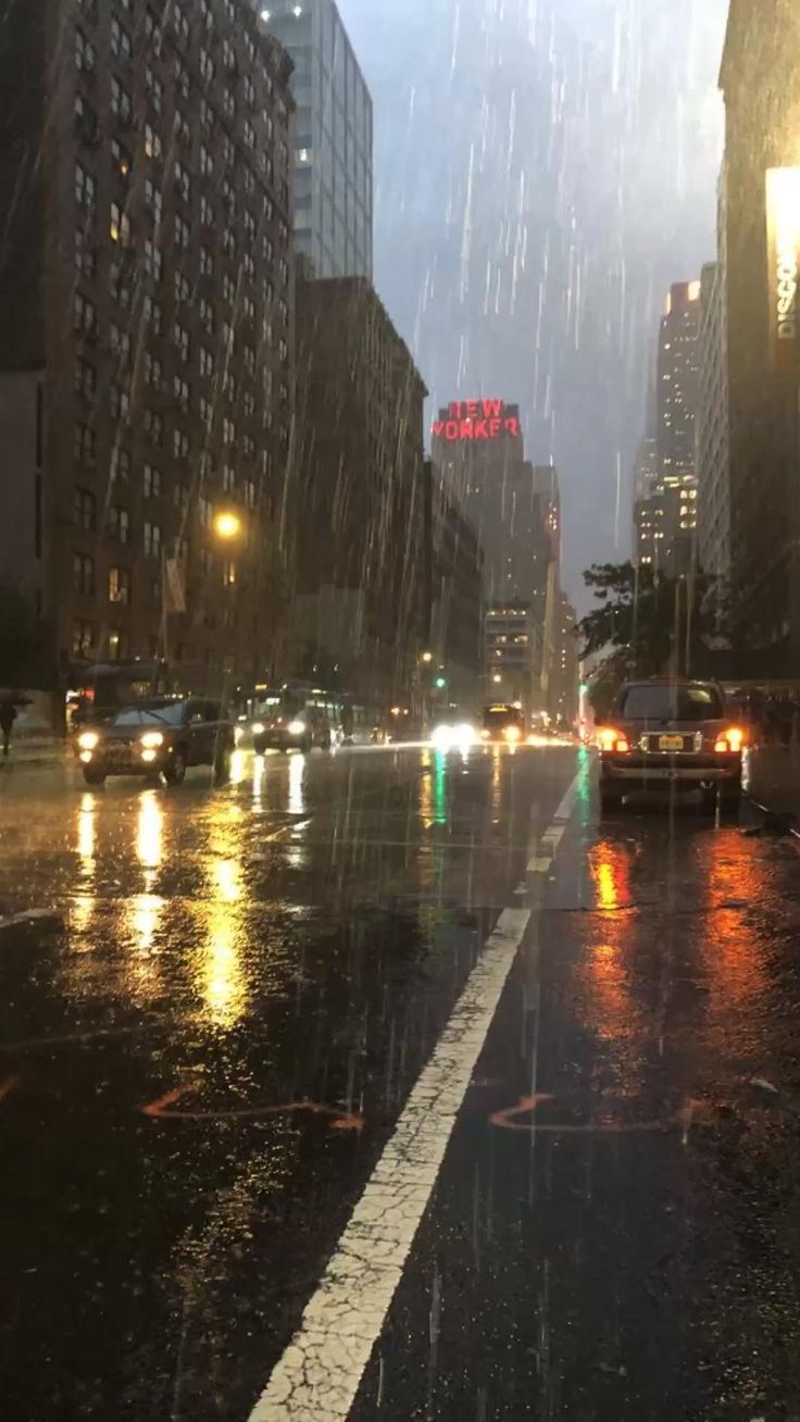 Kondisi jalan raya di kota ketika hujan turun dengan derasnya./Akun Pinterest (@Pinterest)