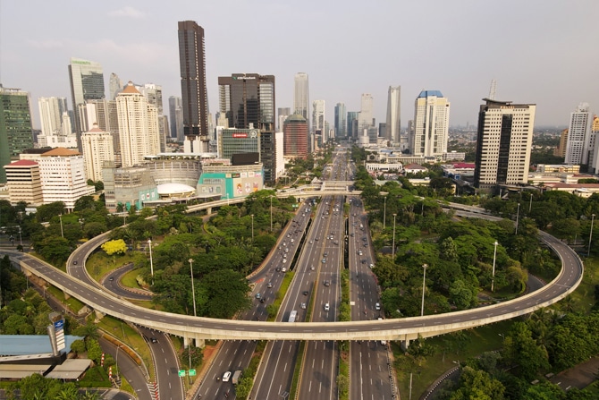 Suasana gedung perkantoran di Jakarta, Kamis (5/8/2021). Badan Pusat Statistik mengumumkan realisasi pertumbuhan ekonomi Indonesia kuartal II-2021 sebesar 7,07 % secara year on year (YoY). Realisasi pertumbuhan ekonomi Indonesia kuartal II-2021 ini lebih