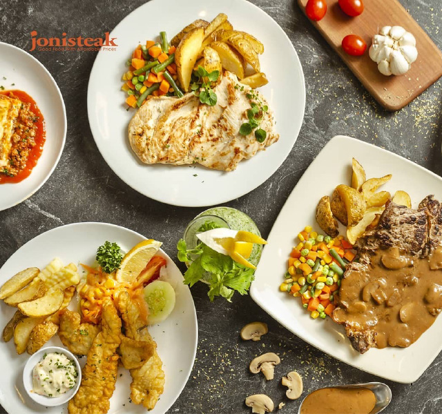 Joni Steak memiliki menu makanan seperti Beef Steak, Chicken Steak, Seafood Steak, Pasta, dan Pizza dengan berbagai macam pilihan daging serta sausnya. Harga makanannya mulai dari Rp 35.000 hingga Rp 95.000. Tersedia juga dessert dan berbagai macam minuman. Restoran steak di Jakarta ini cocok menjadi pilihan restoran yang murah dan sudah pasti enak.