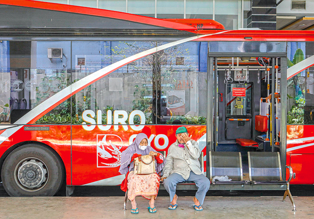 DITUNGGU-TUNGGU: Suroboyo Bus menjadi incara warga untuk ditumpangi karena lebih nyaman dan melintasi tengah kota. (Dipta Wahyu/Jawa Pos)