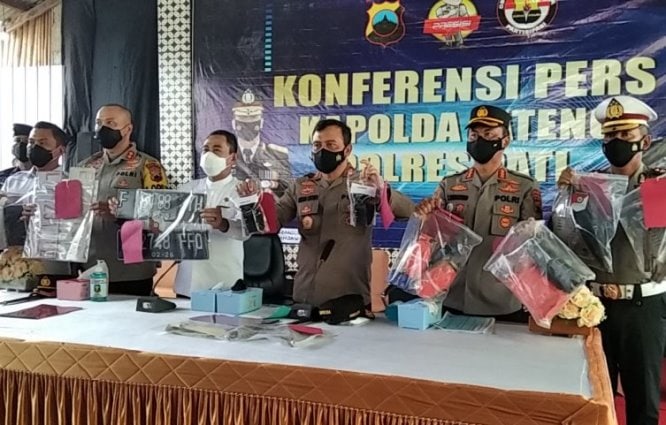 Kapolda Jateng Irjen Pol Ahmad Luthfi menunjukkan barang bukti didampingi Kapolres Pati AKBP Arie Prasetya Syafa