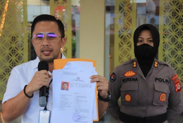 Direskrimum Kombes Pol Ade Ary Syam Indradi menunjukkan foto tersangka AL yang berstatus DPO di Mapolda DIJ, Jogjakarta, Rabu (6/7). Polda DIJ/Antara