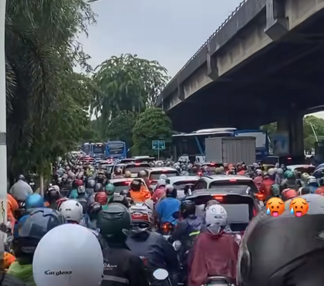 Kemacetan parah terjadi di ruas Jalan Yos Sudarso, Jakarta Utara, akibat hujan yang mengguyur ibu kota sejak pagi pada Kamis (29/2)