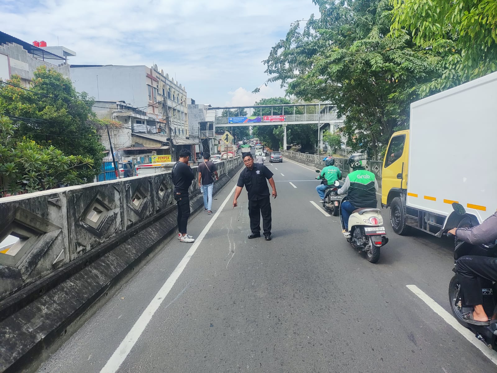 Viral di media sosial seorang pengemudi ojek online (ojol) berinisial T, 62, tewas tertabrak truk di Flyover Bandengan, Tambora. (Istimewa)