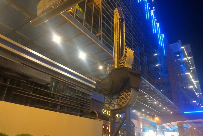Meski sudah beberapa hari lalu ditutup, ikon gitar raksasa di lokasi Hard Rock Cafe masih berdiri disangga kuat oleh besi yang masih tertancap kokoh.  Namun ikon gitar raksasa itu kini sudah diselimuti kain hitam menandai momen penutupannya.