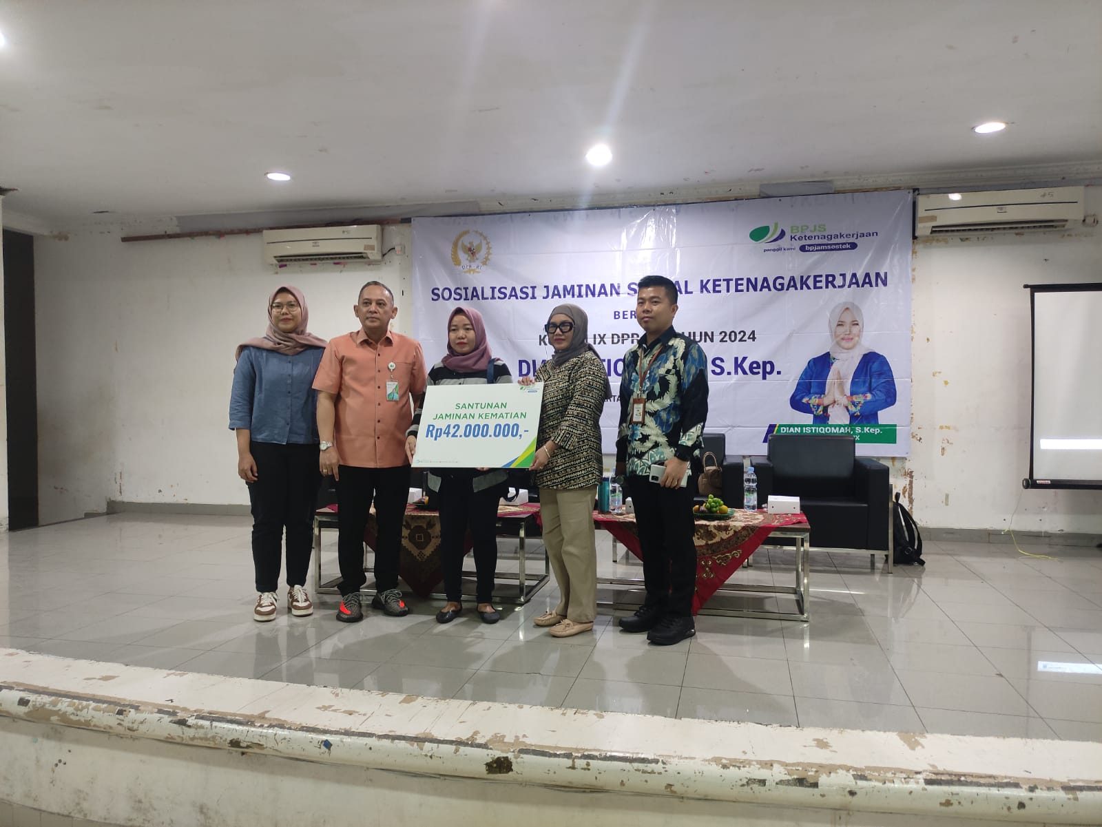JawaPos.com - Kantor BPJS Ketanagekerjaan Grha BPJamsostek menyerahkan santunan kematian terhadap ahli waris atas nama Yuli Setyawati. Penyerahan itu secara simbolis dilakukan pada tanggal 7 agustus 2024.