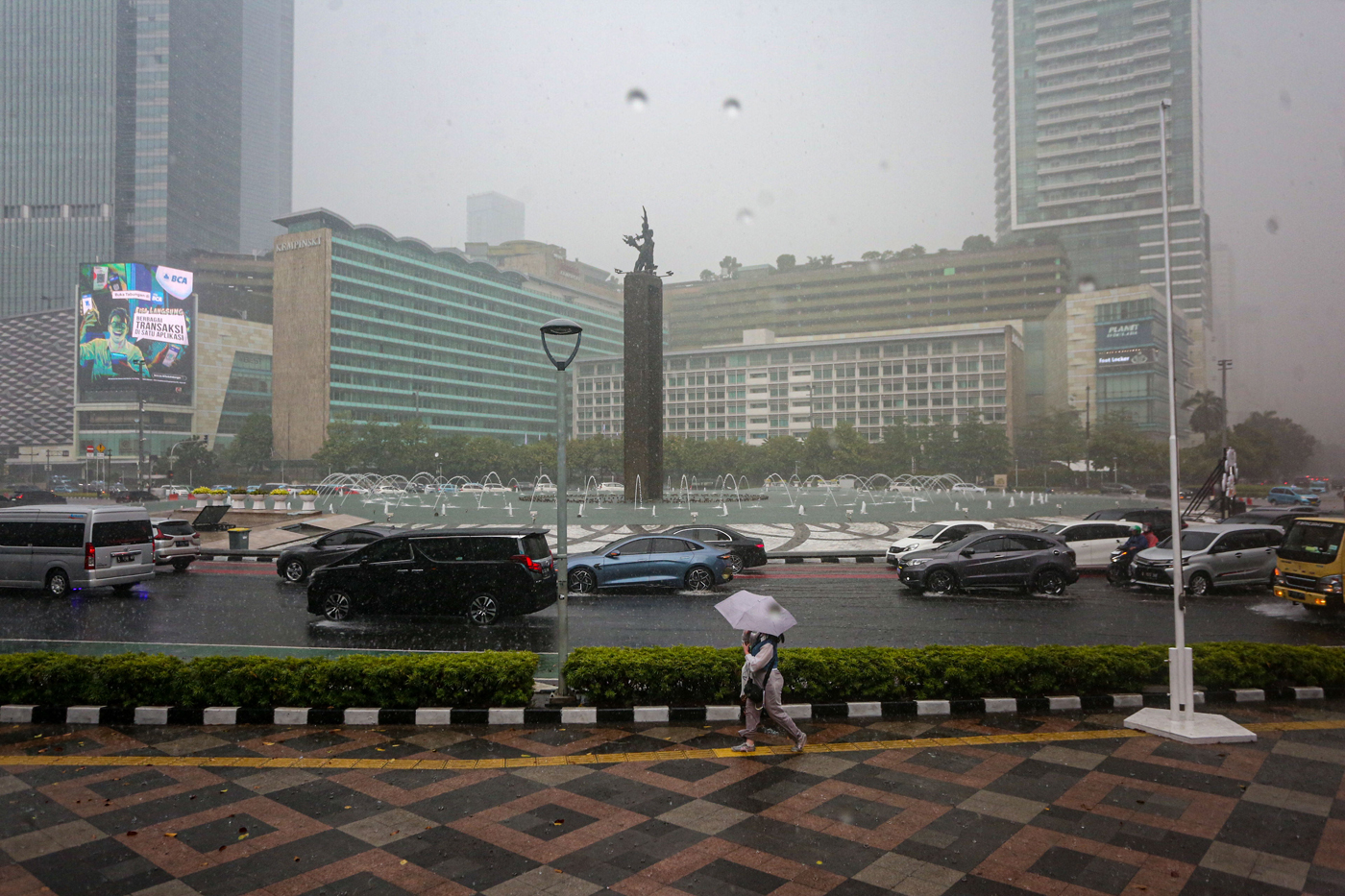 Ilustrasi hujan deras di kawasan Bundaran HI. (Miftahul Hayat/Jawa Pos)